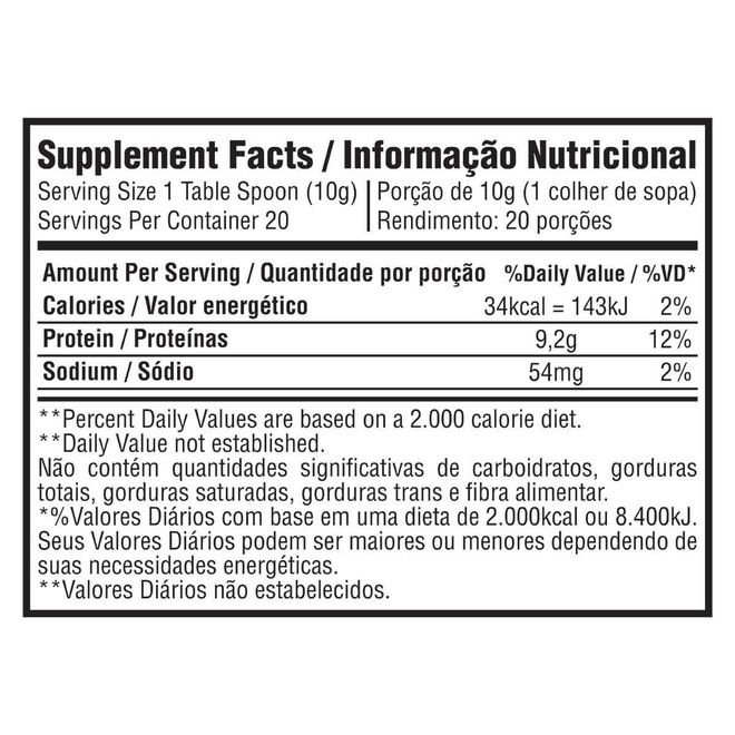 Ingredientes: Colágeno hidrolisado em pó, ácido cítrico, aromatizante, edulcorante sucralose e corante vermelho allura AC..