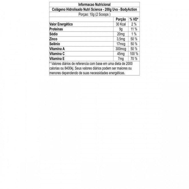 Colágeno Hidrolisado BodyAction Nutri Science - Uva - 200g