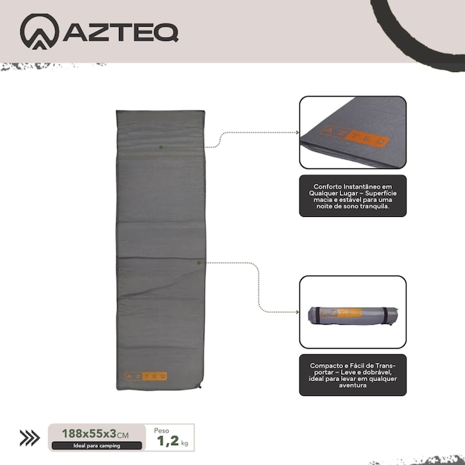 Diferente de isolantes tradicionais, o Azteq Ruby proporciona mais conforto e praticidade, graças ao seu sistema de auto inflação e espuma de célula aberta com memória. Isso permite um ajuste rápido e fácil, tornando-o perfeito para quem busca praticidade em qualquer aventura.