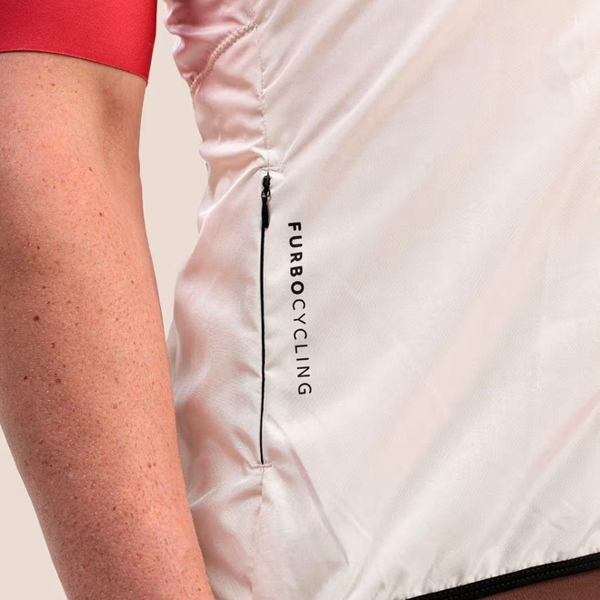 A praticidade é evidente na compactibilidade do tecido de baixa gramatura, tornando-o fácil de dobrar e transportar no bolso da camisa de ciclismo. O zíper frontal inteligente, que trava ao abaixar e libera ao levantar, simplifica a colocação e retirada durante os pedais. A barra traseira elástica com filamentos de silicone mantém o colete no lugar, resistindo à interferência do vento.