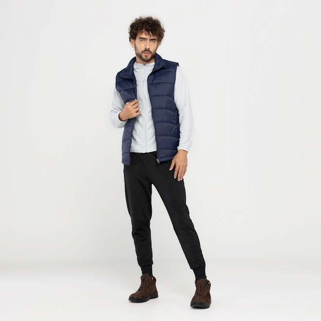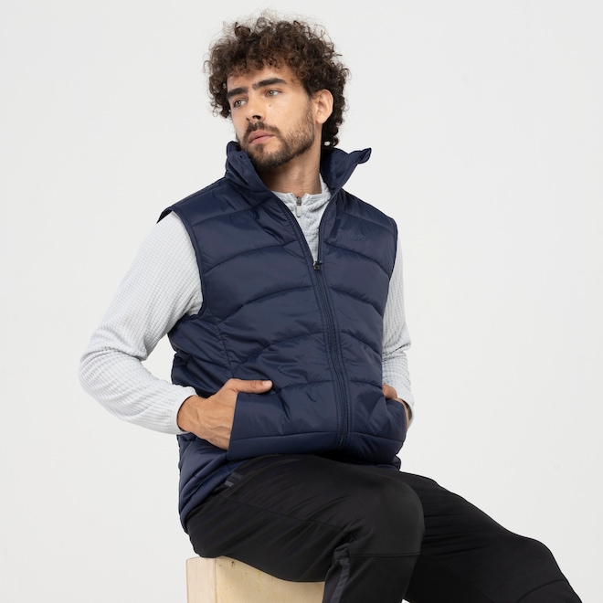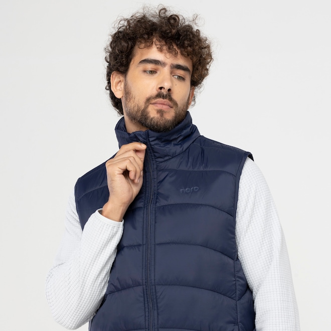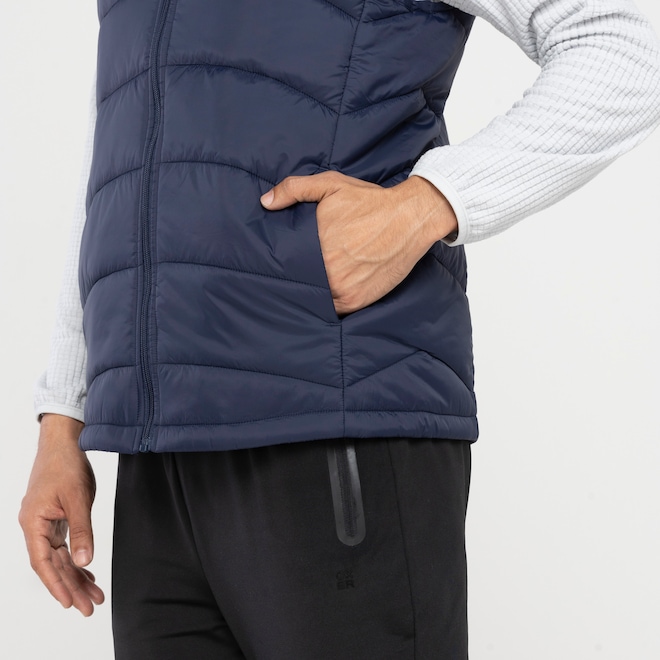 Sem mangas, facilita a liberdade dos movimentos e seu fechamento em zíper com gola alta garante proteção total contra o frio e vento.