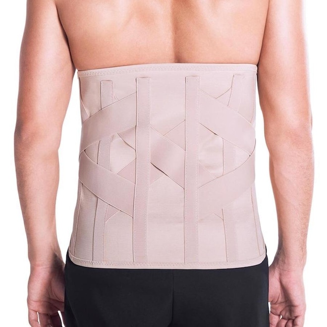 Elaborado com elástico em corpo único, que proporciona melhor ajuste, possui 4 hastes em duralumínio que serão moldadas ao corpo, além de duas hastes flexíveis nas laterais para proporcionar maior conforto ao corpo do paciente.