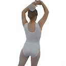 Modelo regata com gola em U e a parte das costas do collant mais cavada.