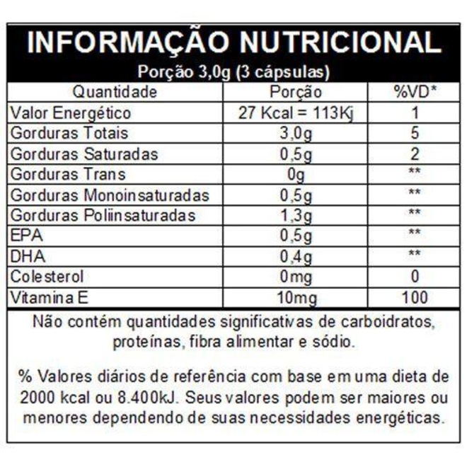 Tabela Nutricional - Omegafor - 120 Cápsulas 1g - Vitafor.