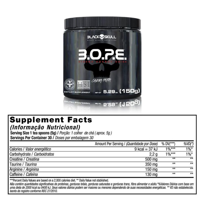 2x Pré Treino Black Skull BOPE - Limão - 150g