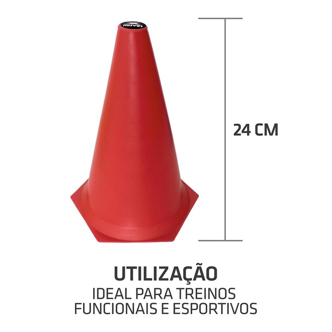 O Kit Cones de Marcação de Plástico da Muvin Esportes foi desenvolvido para delimitação de diferentes espaços em treinos esportivos e funcionais, promovendo melhor organização de circuitos e resultando em melhor desempenho.