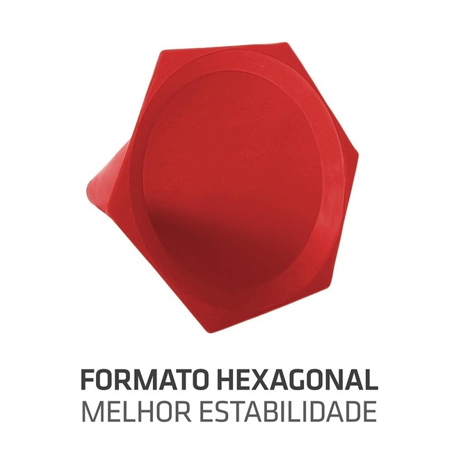 A base possui formato hexagonal, promovendo boa estabilidade e firmeza aos cones.