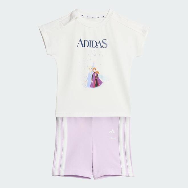 Descubra um mundo de encantamento com o CONJUNTO CAMISETAS adidas DISNEY FROZEN, onde cada dia parece uma aventura mágica. Inspirado nas amadas personagens Elsa e Anna, este conjunto capta o espírito da brincadeira e da imaginação. A estampa vibrante da Elsa, combinando as estampas digitais e glíter, traz um toque de brilho ao guarda-roupa do seu pequeno, tornando-o uma ótima opção tanto para a hora de brincar quanto para ocasiões especiais. Confeccionado com uma mistura de algodão e elastano em uma estrutura de malha simples, o tecido oferece maciez e flexibilidade, permitindo que os jovens aventureiros se movimentem livre e confortavelmente. Uma blusa de modelagem padrão e uma calça de modelagem justa são projetadas para proporcionar uma modelagem relaxada, porém descontraída, adequada para dias ativos cheios de exploração e diversão. Um cós de cintura média acrescenta uma camada extra de conforto, para uma sensação de segurança durante todo o dia. Este conjunto celebra a parceria, reunindo destaques de dois mundos. Deixe seus filhos abraçarem a Elsa que existe dentro deles e aproveitar a magia de Frozen com este encantador conjunto.