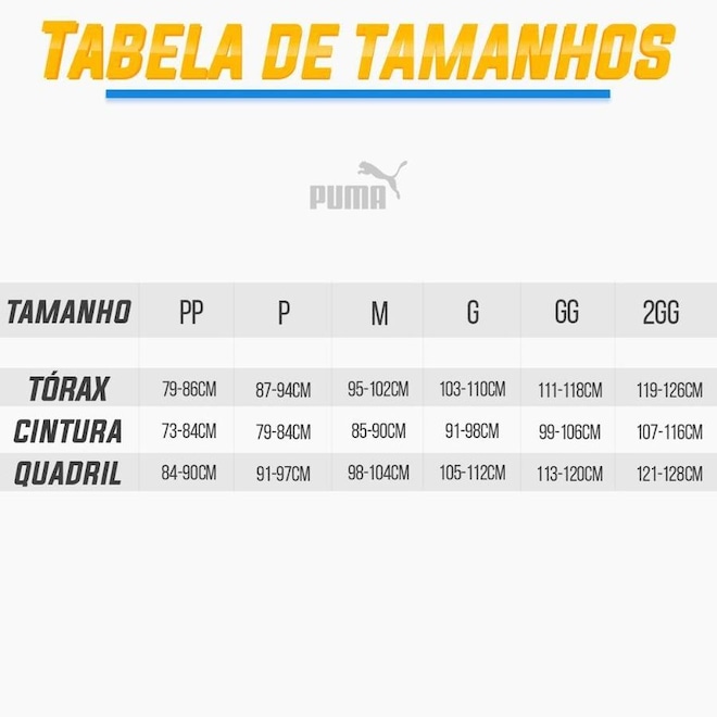 ? Logo PUMA por estampagem térmica do lado direito do peito e na perna esquerda