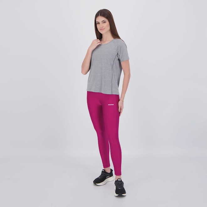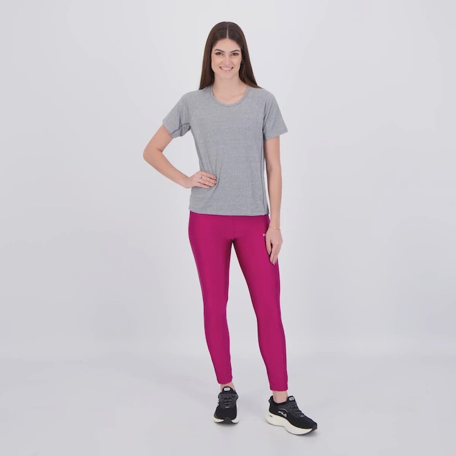 Camiseta Composição: 100% Poliamida Cor predominante: Cinza Indicado para: Treino Bolsos: Sim, dois laterais Gênero: Feminino Origem: Nacional Logo: Estampada Manga: Curta Gola: Careca Dimensões aproximadas (A x L): P: 57 x 44 cm M: 59 x 46 cm G: 61 x 48 cm GG: 63 x 50 cm Calça Composição: 75% Poliamida e 25% Elastano Ajuste: Elástico reforçado no cós Cor predominante: Roxa Origem: Nacional Logo: Estampada Gênero: Feminina Bolsos: Não Forro: Não Dimensões aproximadas (A x L): P: 88 x 34 cm M: 90 x 36 cm G: 92 x 38 cm GG: 94 x 40 cm