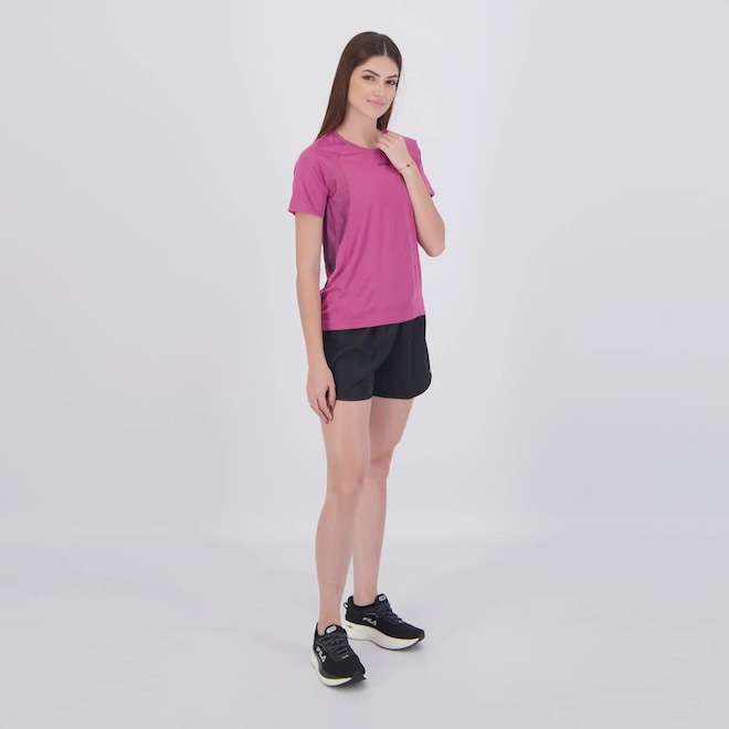 Camiseta Composição: 100% Poliéster Cor predominante: Rosa Indicado para: Treino Gênero: Feminino Origem: Nacional Logo: Estampada Manga: Curta Gola: Careca Dimensões aproximadas (A x L): M: 62 x 47 cm G: 64 x 49 cm Shorts Composição: 100% Poliéster Ajuste: Elástico reforçado no cós e elástico para ajuste franzido na lateral Cor predominante: Preto Bolsos: Não possui Origem: Nacional Logo: Estampada Gênero: Feminino Forro: Não Dimensões aproximadas (A x L): M: 38 x 36 cm G: 40 x 38 cm