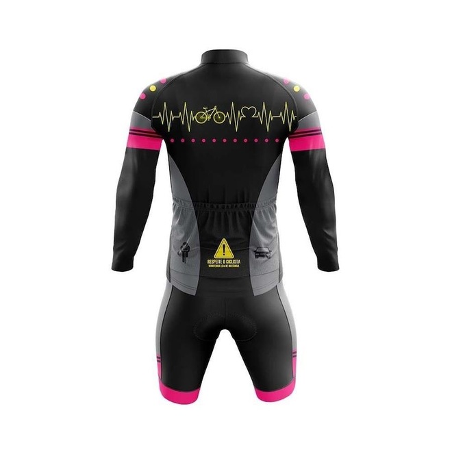 A bermuda do conjunto de ciclismo é feita em lycra e possui recortes diferenciados, elástico antiderrapante nas pernas e forro anatômico importado desenvolvido com alta tecnologia para quem ama pedalar.