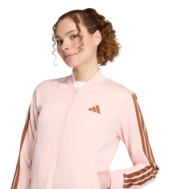 A jaqueta com fechamento por zíper permite fácil colocação e proteção extra contra o vento. Além disso, conta com bolsos funcionais, ideais para manter as mãos aquecidas. Com um design moderno e elegante, este conjunto traz o autêntico estilo esportivo da adidas.
