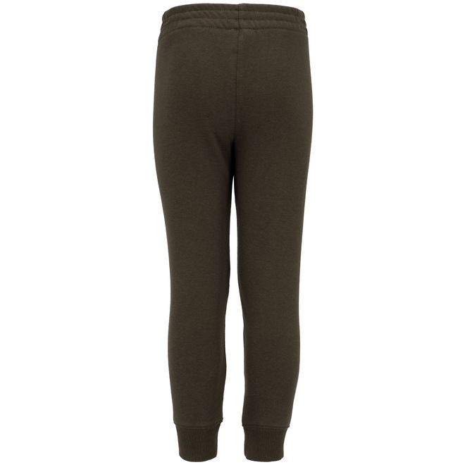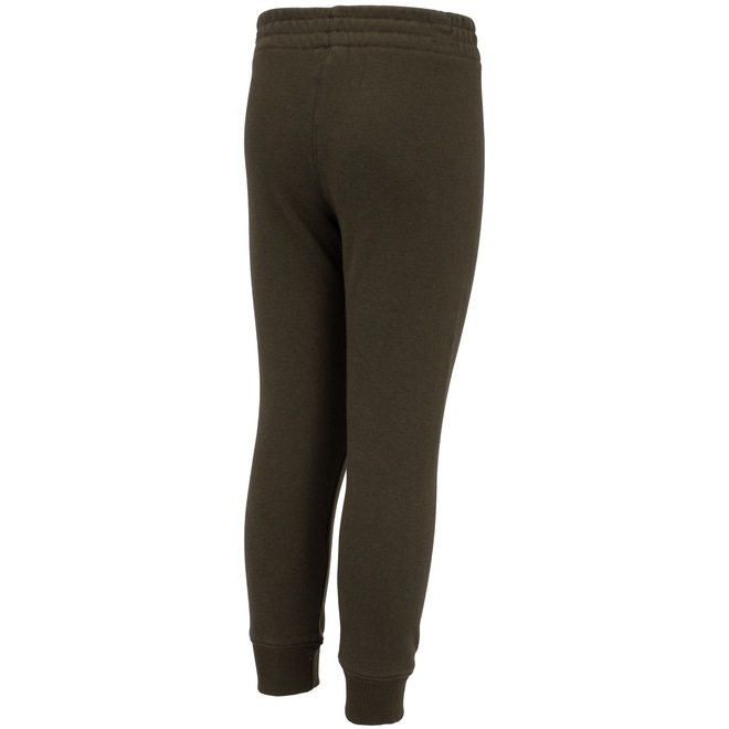 A calça possui cós elástico e barra canelada, proporcionando um ajuste seguro e confortável.