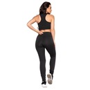 Este conjunto fitness é composto por uma legging e um top sem bojo, que são produzidos em tecido microfibra (90% poliéster e 10% elastano de alta qualidade).