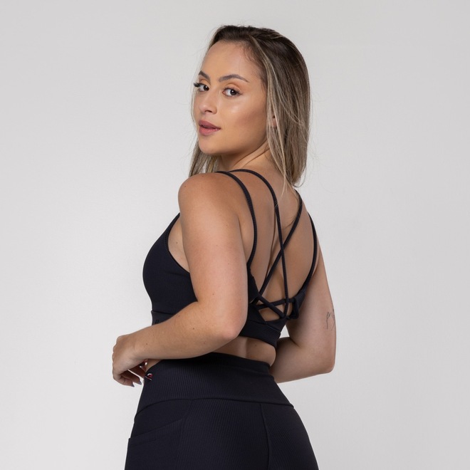 O top multifuncional pode ser usado de três formas diferentes, se transformando em uma peça coringa no guarda-roupas fitness. Conta com bojo removível com tratamento especial: não deforma, tem toque macio e não retém suor. O elástico no cós oferece ainda mais sustentação e conforto.