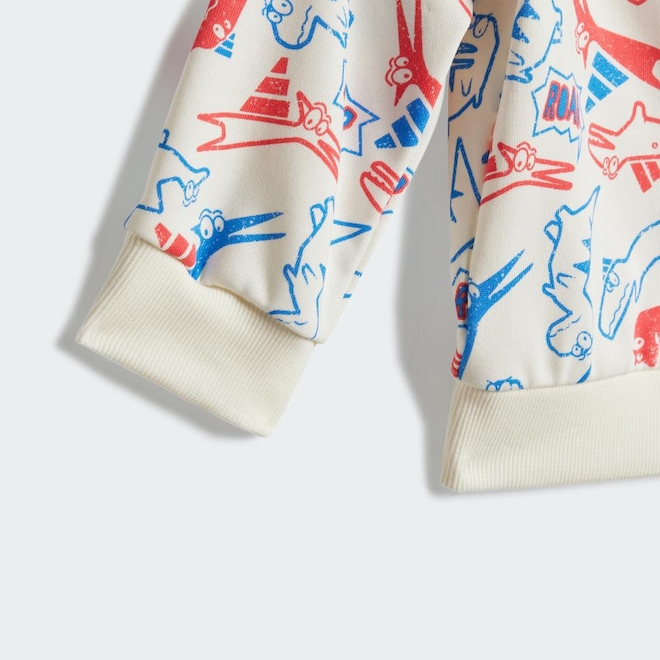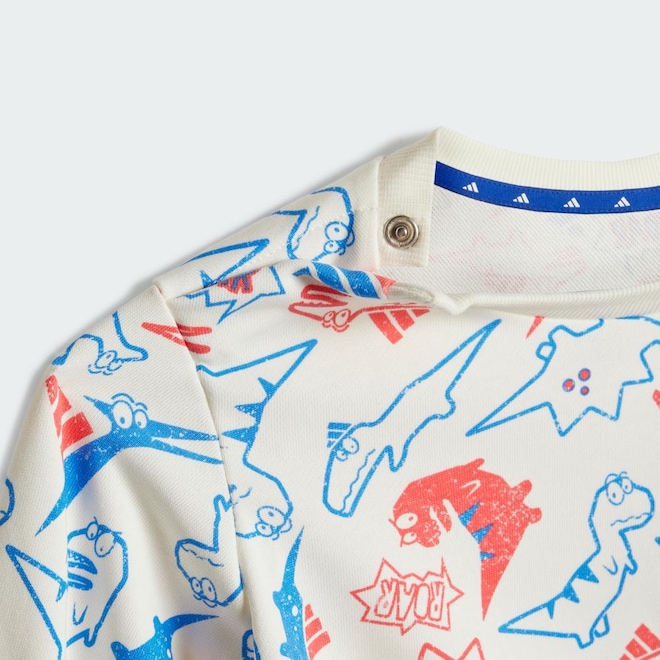 As crianças que adoram dinossauros vão adorar esse conjunto de calça jogger para bebês. O tecido de moletinho foi criado para proporcionar conforto e diversão. A estampa divertida de dinossauro desse moletom é perfeita para o playground.