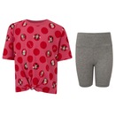 A camiseta e o short possuem um design encantador inspirado na Minnie, trazendo um toque lúdico e cheio de estilo para as crianças.