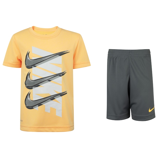 O Conjunto Infantil Nike é a escolha perfeita para os pequenos se manterem ativos com estilo. A camiseta com gola careca e estampa personalizada oferece um visual moderno, enquanto a bermuda ajustável proporciona conforto e praticidade. Fabricado com a tecnologia Dri-Fit, garante rápida absorção do suor, mantendo a pele seca durante as atividades. Ideal para o dia a dia e atividades esportivas, este conjunto da marca Jordan combina qualidade e design arrojado. Garanta já!