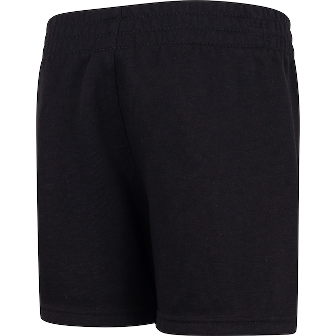 A bermuda com cós elástico e cintura média oferece ajuste perfeito para brincar ou treinar.