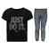 A camiseta apresenta um design moderno, com o icônico logo da Nike e frase "Just Do It" estampados, enquanto a legging oferece um ajuste confortável e flexível, ideal para atividades físicas e momentos de lazer.