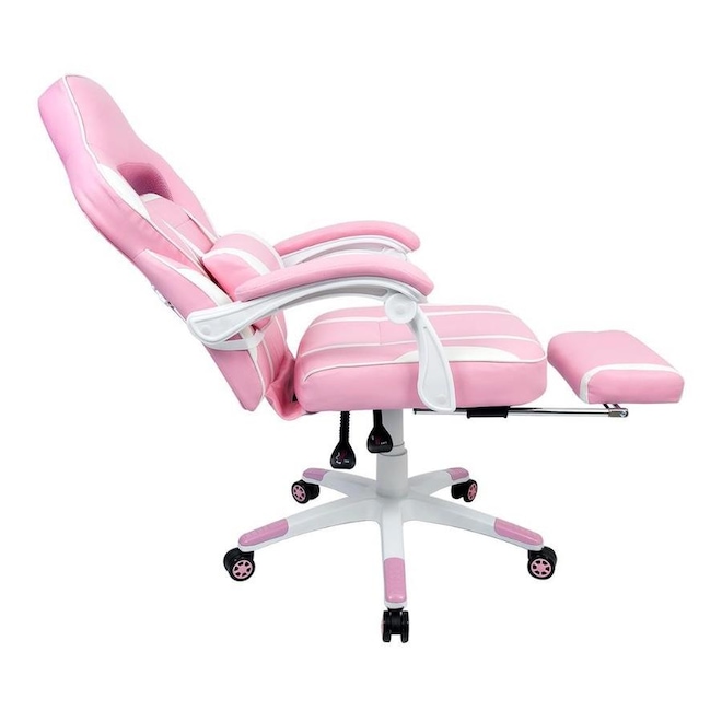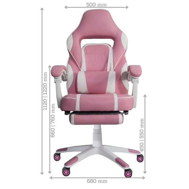 A Mesa Gamer PEL-008P tem estrutura metálica branca e tampo em MDF com revestimento rosa, que combina perfeitamente com a Cadeira Gamer Gamer PEL-3020, que é revestida em couro PU rosa com detalhes em branco, encosto reclinável e apoio retrátil para as pernas localizado abaixo do assento que pode ser facilmente acionado proporcionando muito mais conforto e garantindo uma ótima postura.Principais Características da Cadeira:
