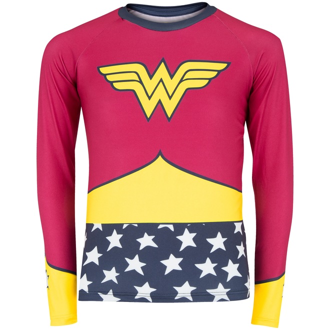 Conheça o Conjunto Camiseta Manga Longa Proteção Solar UV e Sunkini Liga da Justiça Mulher-Maravilha Infantil!