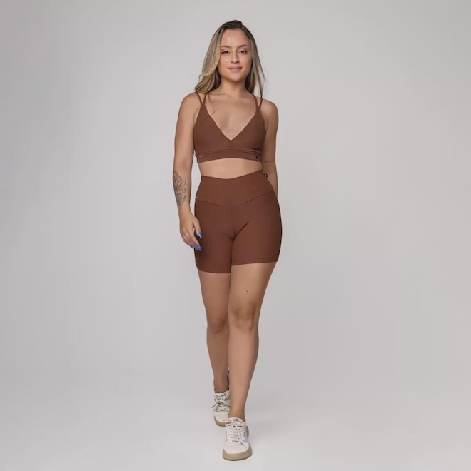 Detalhe de tiras trançadas nas costas que valorizam o visual e dão aquele UP no treino