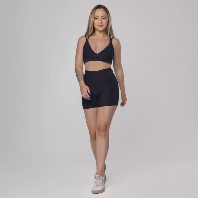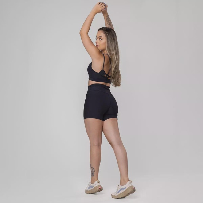Detalhe de tiras trançadas nas costas que valorizam o visual e dão aquele UP no treino