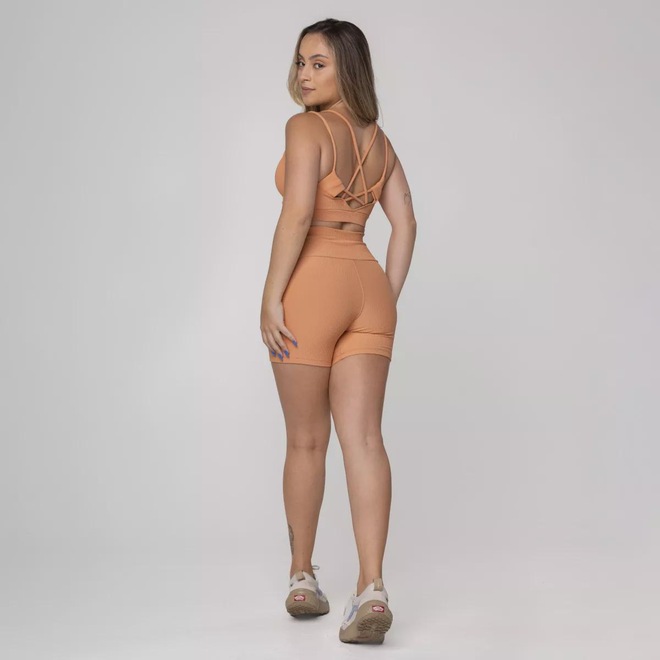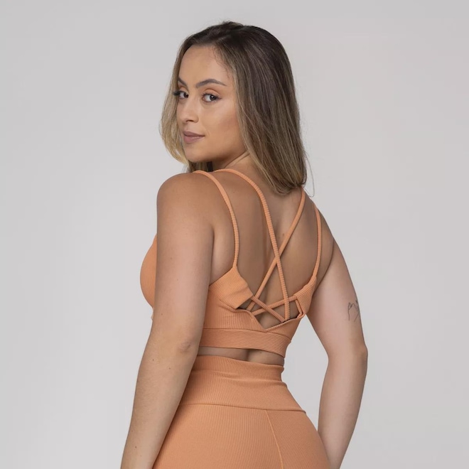 Detalhe de tiras trançadas nas costas que valorizam o visual e dão aquele UP no treino