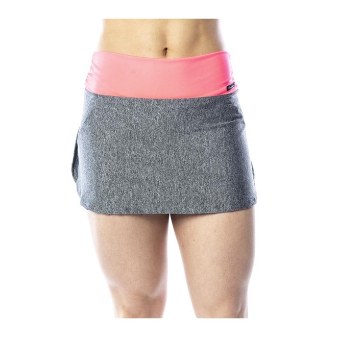 Conjunto de top fitness cropped com bojo e saia short fitness curta com detalhe em cós rosa. Composição : 92% Poliéster e 8% ElastanoConjunto Fitness ( Saia Short Fitness e Top Fitness)