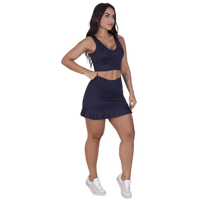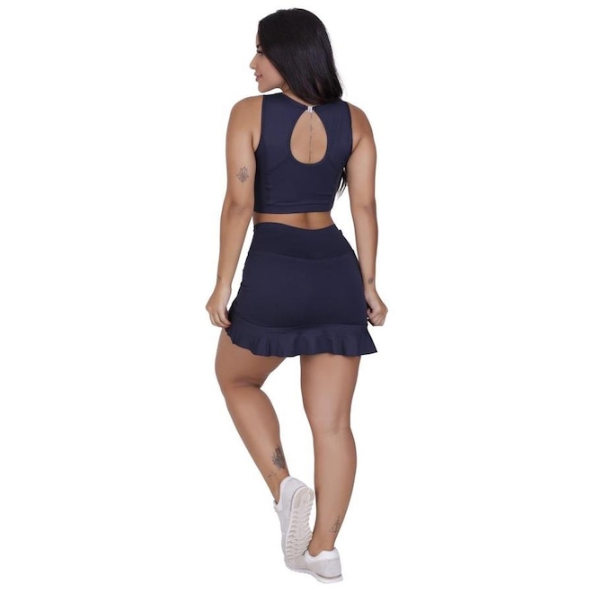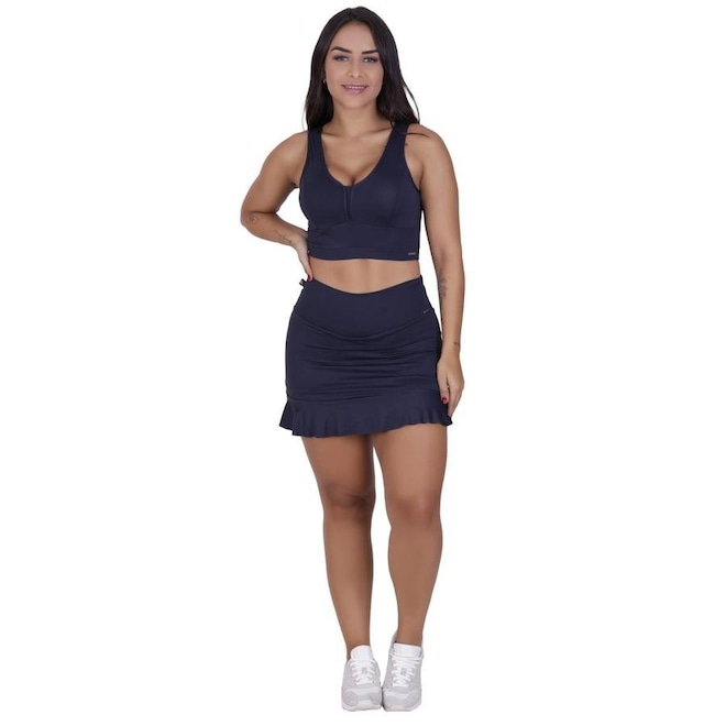Conjunto de Short Saia com Cropped com Bojo Removível e fechamento por presilha na parte de trás que facilita a retirada e colocação. Ideal para os mais variados esportes, incluindo os que são ao ar livre, como: Beach Tennis, Tênis, Corridas, Caminhadas e etc.