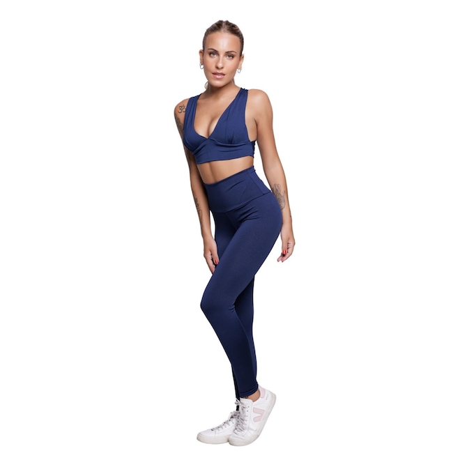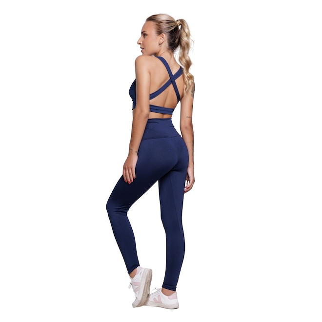 Confeccionado em suplex liso, esse modelo de conjunto possui top com bojo e costa cruzada e calça com cós alto, sem elástico na cintura. O cós modela e promove melhor ajuste ao corpo. Confortável, ele é ideal para a prática de atividades físicas e uso diário.