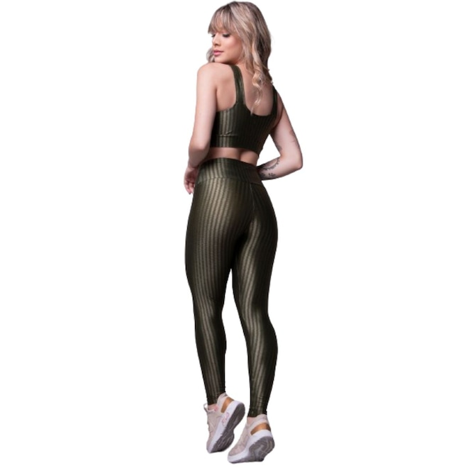 Confeccionado em Poliamida de média compressão, que te dá sustentação mas sem perder o conforto, esse modelo de conjunto possui parte de cima no estilo top regata com bojo removível e parte inferior no formato de calça legging com cós alto.