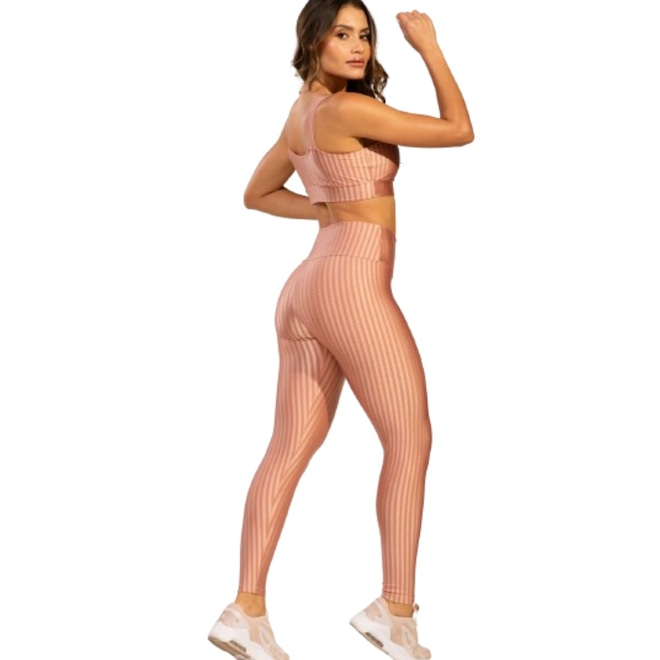 Confeccionado em Poliamida de média compressão, que te dá sustentação mas sem perder o conforto, esse modelo de conjunto possui parte de cima no estilo top regata com bojo removível e parte inferior no formato de calça legging com cós alto.