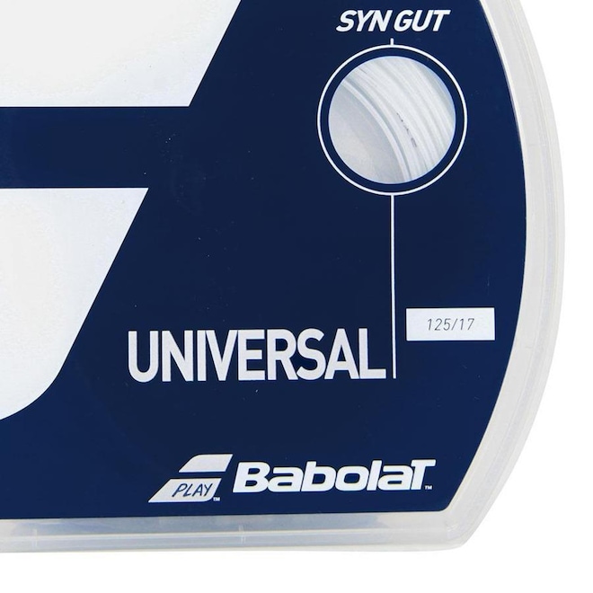 Conheça as características da Corda Babolat Synthetic Gut Universal 17L 1.25mm Branca - Set Individual - Pack com 03 Unidades - Perfil: Potência e conforto - Material: Tripa Sintética - Detalhamento: Pack com 03 unidades, corda na cor branca, indicada para todos os tipos de jogadores, proporciona potênica e conforto, set individual (12m) - Espessura: 1.25mm / 17L - Origem: Importado.