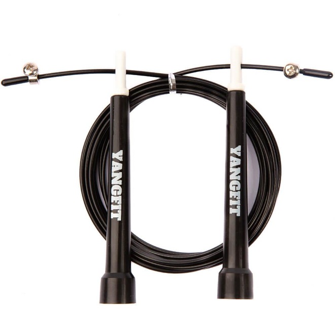 Corda de pular com cabo de aço revestido de polímero especial de plástico, é ajustável e tem rolamento é simples, o que torna os movimentos como o Double Under (salto duplo) e Triple Under (salto triplo) mais fáceis de se realizar.