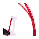 Possui um cabo de 3 metros, totalmente ajustável, feito de aço galvanizado e revestido por resina plástica de nylon (mais resistente que PU) que evita a disjunção dos filamentos de aço.