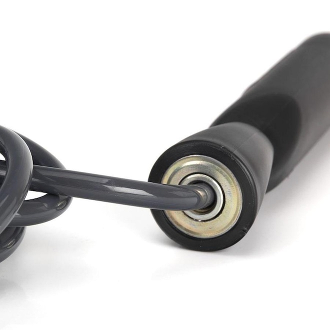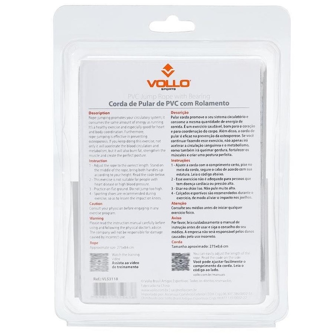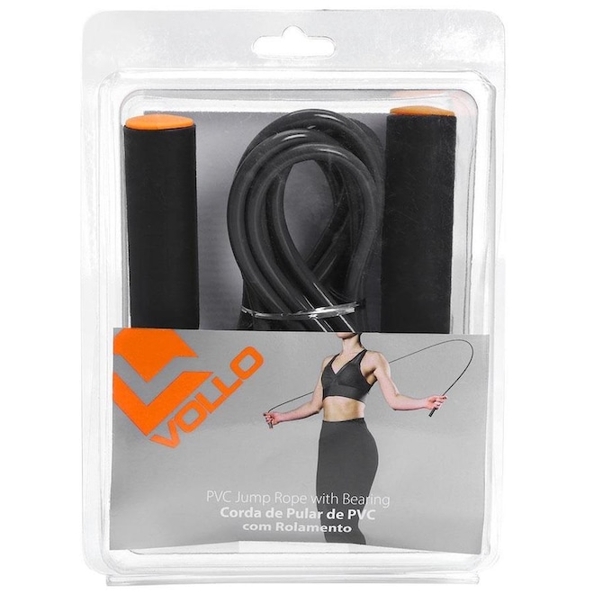 Conheça as Características da Corda de Pular Vollo de PVC com Rolamento 275 x 0,6cm Preta - Perfil: Fitness - Material: Polipropileno (PP) e PVC - Determinando o comprimento ideal: Pise no centro da corda.