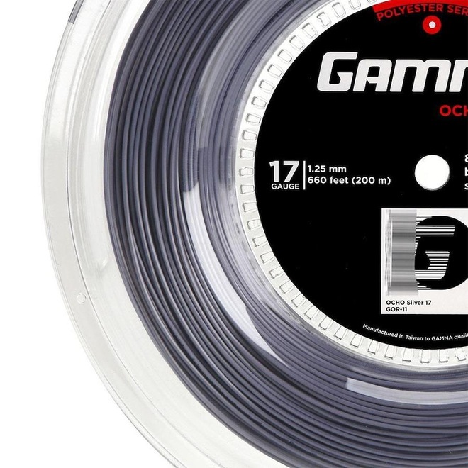 A Corda Gamma Ocho 17L 1.25mm Prata - Rolo com 200 metros, feita em monofilamento de poliéster, oferece um equilíbrio entre spin e controle em todos os níveis e estilos de jogo, se tornando a escolha dos profissionais que buscam a qualidade para obter a excelente performance em quadra.