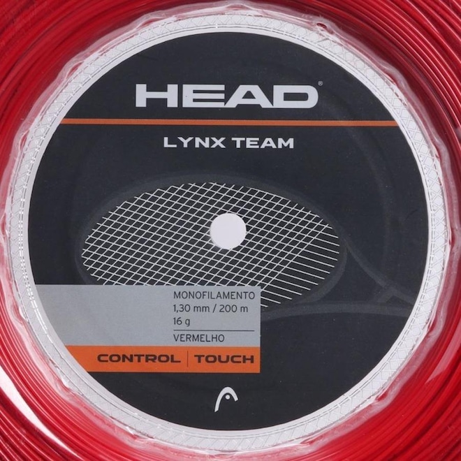 Conheça as características da Corda Head Lynx Team Vermelho 16l 1.30mm - Rolo com 200 Metros - Perfil: Controle e Durabilidade - Material: Copolímero de poliéster - Detalhamento: Corda na cor vermelha, Rolo com 200 metros - Espessura: 1.30 mm / 16L - Origem: Importado.