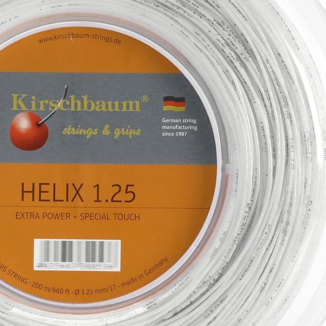 Com 30 anos de experiência no mercado, a Kirschbaum Strings and Grips é uma empresa alemã que oferece produtos de alta qualidade para os praticantes de tênis, como cordas para raquetes, grips e antivibradores. A marca é reconhecida mundialmente pela excelência e inovação dos seus produtos, uma prova disso é a Corda Kirschbaum Helix 17L 1.25mm Rolo com 200 metros Branca