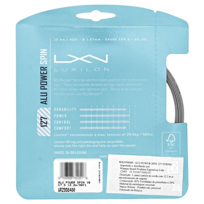 Conheça as características da Corda Luxilon Alu Power Spin 16L 1.27mm Cinza - Set Individual