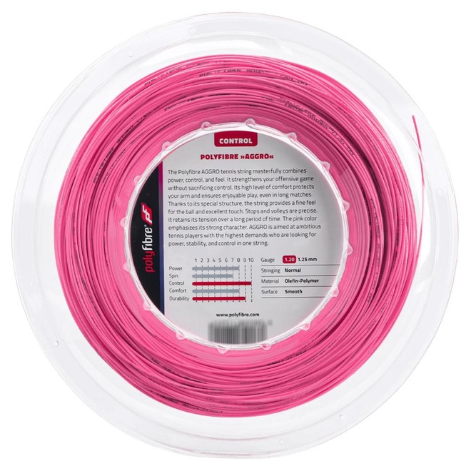 A Polyfibre é uma marca alemã, com reconhecimento internacional por seus produtos de qualidade, focada em desenvolver acessorios para o esporte de tennis, permitindo o máxima de desempenho dos atletas. A prova disso é a Corda Polyfibre Aggro 17L 1.20mm Pink - Rolo com 200 Metros que proporcionará uma excelente controle e durabilidade em suas jogadas.