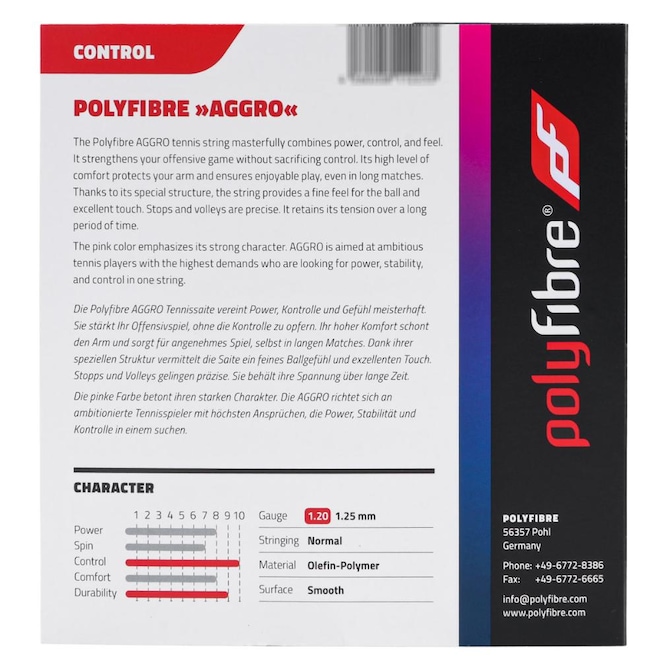 A Polyfibre é uma marca alemã, com reconhecimento internacional por seus produtos de qualidade, focada em desenvolver acessorios para o esporte de tennis, permitindo o máxima de desempenho dos atletas. A prova disso é a Corda Polyfibre Aggro 17L 1.20mm Pink - Set Individual que proporcionará uma excelente spin e controle em suas jogadas.