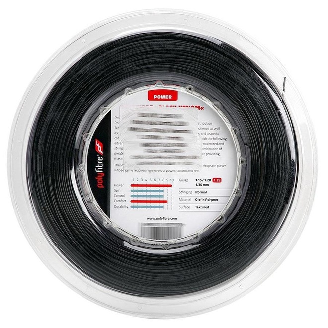Conheça as características da Corda Polyfibre Black Venom 17L 1.25mm Preta - Rolo com 200 Metros - Perfil: Conforto e potência - Tecnologia: Tecnologia de Distribuição Molecular Padronizada (SDM) proporciona resiliência duradoura, estabilidade e controle perfeito - Material: Co-Polímero - Detalhamento: Corda na cor preta, indicada para todos os tipos de jogadores, proporciona conforto e potência, rolo com 200 metros - Espessura: 1.25mm / 17L - Origem: Importado.