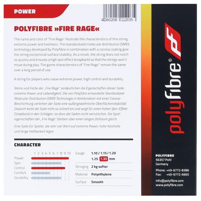A Polyfibre é uma marca alemã, com reconhecimento internacional por seus produtos de qualidade, focada em desenvolver acessórios para o esporte de tennis, permitindo o máximo de desempenho dos atletas. A prova disso é a Corda Polyfibre Fire Rage 16L 1.30mm Laranja - Set Individual que proporcionará um excelente conforto e potência em suas jogadas.