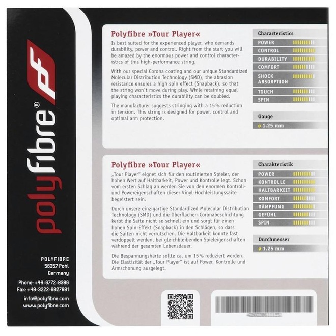 A Polyfibre é uma marca alemã, com reconhecimento internacional por seus produtos de qualidade, focada em desenvolver acessorios para o esporte de tennis, permitindo o máxima de desempenho dos atletas. A prova disso é a Corda Polyfibre Tour Player 17L 1.25mm Grafite - Set Individual foi projetada para potência, controle e proteção ideal do braço.