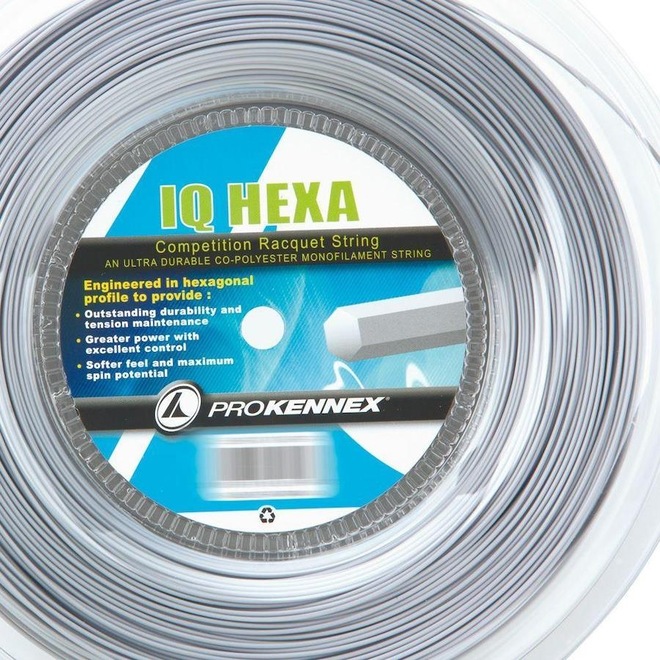 Descrição Corda Prokennex IQ Hexa 17L 1.23mm Rolo com 200 metros A Prokennex foi pioneira no desenvolvimento de raquetes de Tênis, Squash, Badminton e tacos de Golfe.