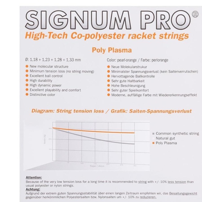 Descrição da Corda Signum Pro Poly Plasma 1.18mm- Set Individual A Signum Pro é uma empresa de operação mundial na indústria do Tênis e oferece uma gama de produtos únicos e de alta qualidade.